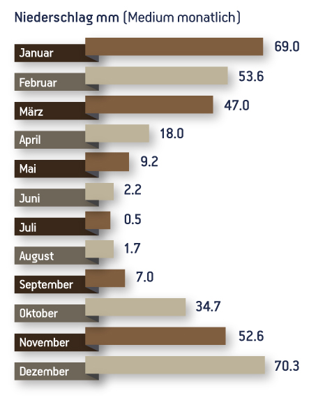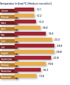 Für Ihre Reiseplanung, unten ist eine detaillierte Liste der Wetter von Paros -Jahr-Runde-, auf einer monatlichen Basis. Die Wetterdaten wurden ab 1960 gesammelt und stammen aus dem Nationalen Wetterdienst von Griechenland.