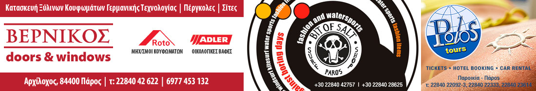 Πάρος. Πάρος διακοπές και Πάρος ξενοδοχεία. Όλες οι παραλίες και τα Παριανά χωριά, όλα τα αξιοθέατα, όλα τα αθλήματα από windsurfing και kitesurfing μέχρι και trekking ή SUP. Διάλεξτε να μείνετε σε ένα από τα 260 δωμάτια, τα 82 ξενοδοχεία και τις 110 βίλες και ιδέες πως να περάσετε τέλεια στις διακοπές σας στην Πάρο! Ένα υπέροχο ελληνικό νησί, κομμάτι από την αλυσίδα των κυκλαδίτικων νησιών με την παγκόσμια φήμη, στο κέντρο του Αιγαίου. Η Πάρος, περίπου 100 μίλια νοτιοανατολικά του Πειραιά, βρίσκεται στα δυτικά της Νάξου, από την οποία τη χωρίζει ένα στενό πλάτους περίπου 5 μιλίων. Ο πιο κοντινός της γείτονας είναι η Αντίπαρος (χωριστός δήμος), που βρίσκεται στα νοτιοδυτικά της Πάρου. Η Πάρος έχει έκταση 196 χλμ² και σχήμα σχεδόν στρογγυλό που μοιάζει με αχλάδι, με ένα μοναδικό βουνό (724 μ.) που οι πλαγιές του κατηφορίζουν ομαλά από όλες τις πλευρές του. Ο Δήμος της Πάρου περιλαμβάνει πολλές ακατοίκητες νησίδες και έτσι η συνολική έκτασή του φθάνει τα 196,308 χλμ². Ο πληθυσμός του νησιού σήμερα ανέρχεται σε 14.000 κατοίκους ενώ οι επισκέπτες υπερβαίνουν τους 200.000 ετησίως.